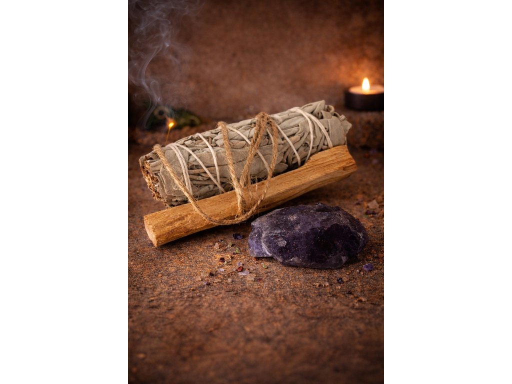 Zapaľte koniec šalvie, nechajte krátko horieť a sfúknite plameň. Dymom očistite priestor alebo seba.