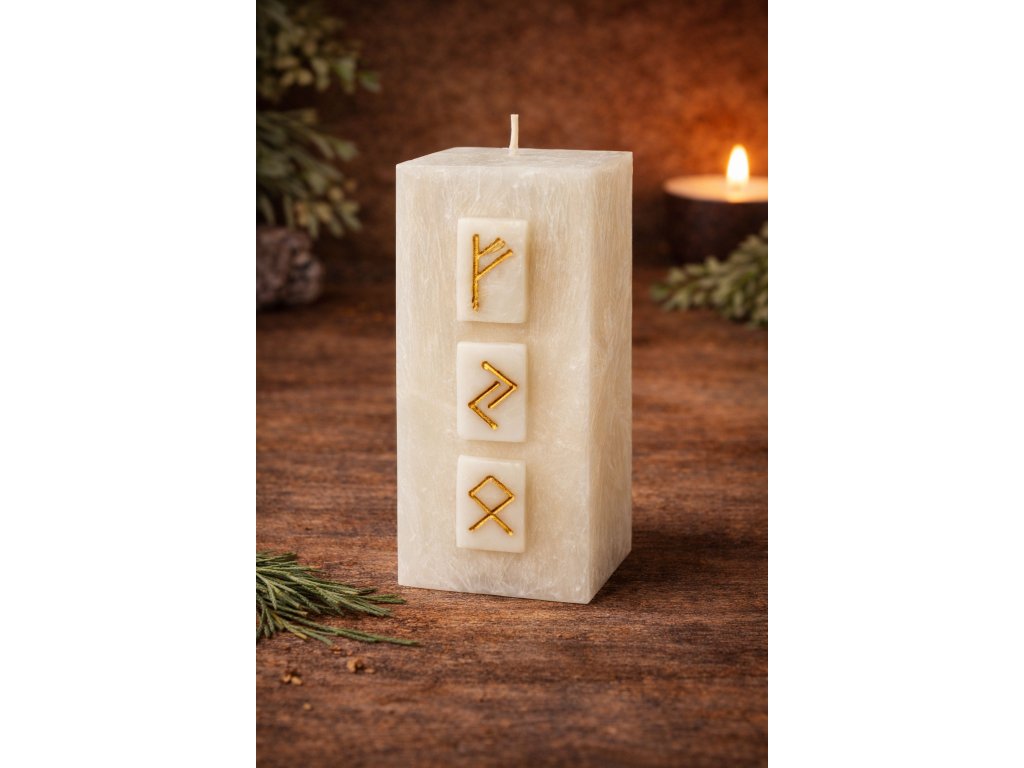 Runová sviečka HOJNOSŤI & PROSPERITA – Fehu • Jera • Othala
